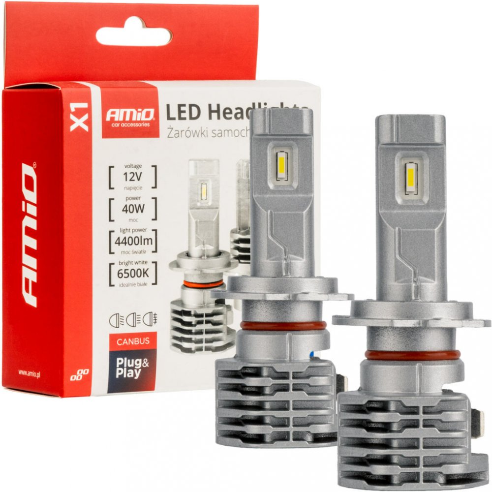 LED žárovky H7/H18 AMiO série X1 se vyznačují velmi vysokou kvalitou. Navrhovaná sestava vyzařuje jasnější a koncentrovanější světlo, což umožňuje lepší viditelnost vozovky v omezených světelných podmínkách, jako je soumrak, mlha nebo déšť. Světelné zdroje vyrobené technologií CSP jsou efektivnější v procesu přeměny elektřiny na viditelné světlo v porovnání s tradičními halogenovými žárovkami. LED žárovky jsou odolnější vůči nárazům a vibracím, což znamená, že mají delší životnost než halogenové žárovky. Série AMiO X1 se vyznačuje velmi atraktivní cenou, pasivním chladícím systémem, malými rozměry a výjimečnou spolehlivostí. Instalace soupravy je stejně jednoduchá jako výměna standardní halogenové žárovky. Žádné časově náročné úpravy stávající instalace a žádné riskantní úpravy. VLASTNOSTI: ? Jasnější a koncentrovanější světlo ? Hodí se pro projekční (čočky) a tradiční světlomety ? Při správném nasazení neoslňují ? Jednoduchá instalace "Plug & Play". ? Odnímatelný otočný montážní adaptér ? Zajistěte lepší zážitek z jízdy a bezpečnost pro vás a vaše cestující ? úspora energie: LED žárovky spotřebují méně energie než halogeny, což pomáhá šetřit palivo a snižovat emise CO2. ? certifikáty: E9 ECE R10, CE, ROHS ? homologace: E9 ECE R10 (elektromagnetická kompatibilita) TECHNICKé PARAMETRY: • napájecí napětí: 12V DC • diody: CSP • teplota barvy: 6500K (bílá) • výkon: 40W • světelný výkon: 4400 lm • životnost: > 30 000 hodin • třída vodotěsnosti: IP67 • certifikáty: E9 ECE R10, CE, ROHS • Výměna žárovky H7 OBSAH SOUPRAVY: • LED žárovky - 2 ks. • uživatelská příručka.