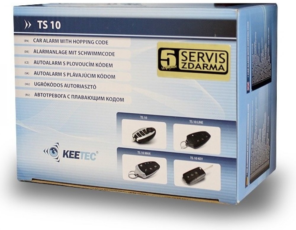 KEETEC TS 10 - značkový autoalarm s plovoucím kódem - obsahuje 2 ks dálkových ovladačů RC MOTO a 2-zónový otřesový snímač. Blokování startu a chodu motoru, ovládání zavazadlového prostoru připomínač zamknutí, vyhledávání vozidla, ovládání centrálního zamykání a ovládání směrových světel pomocí sekvenčního výstupu s automatickou kalibrací času bliknutí.