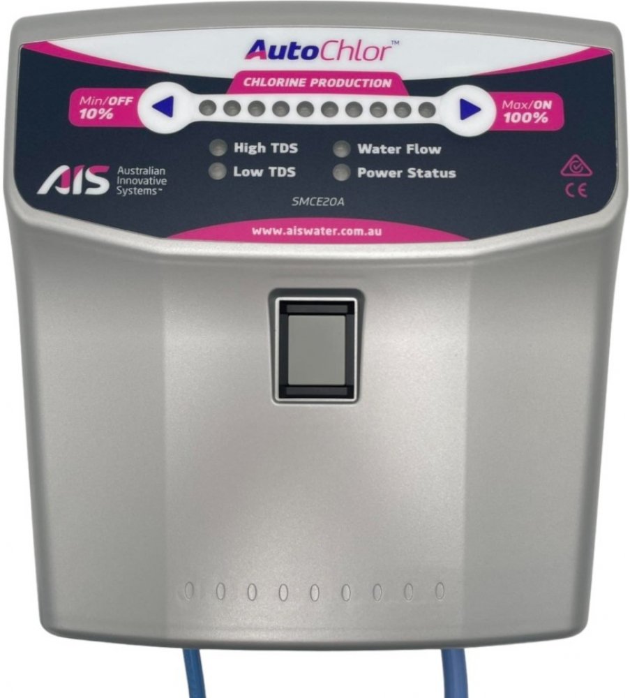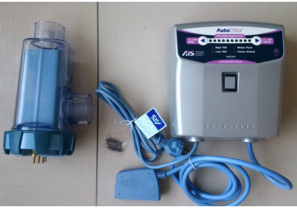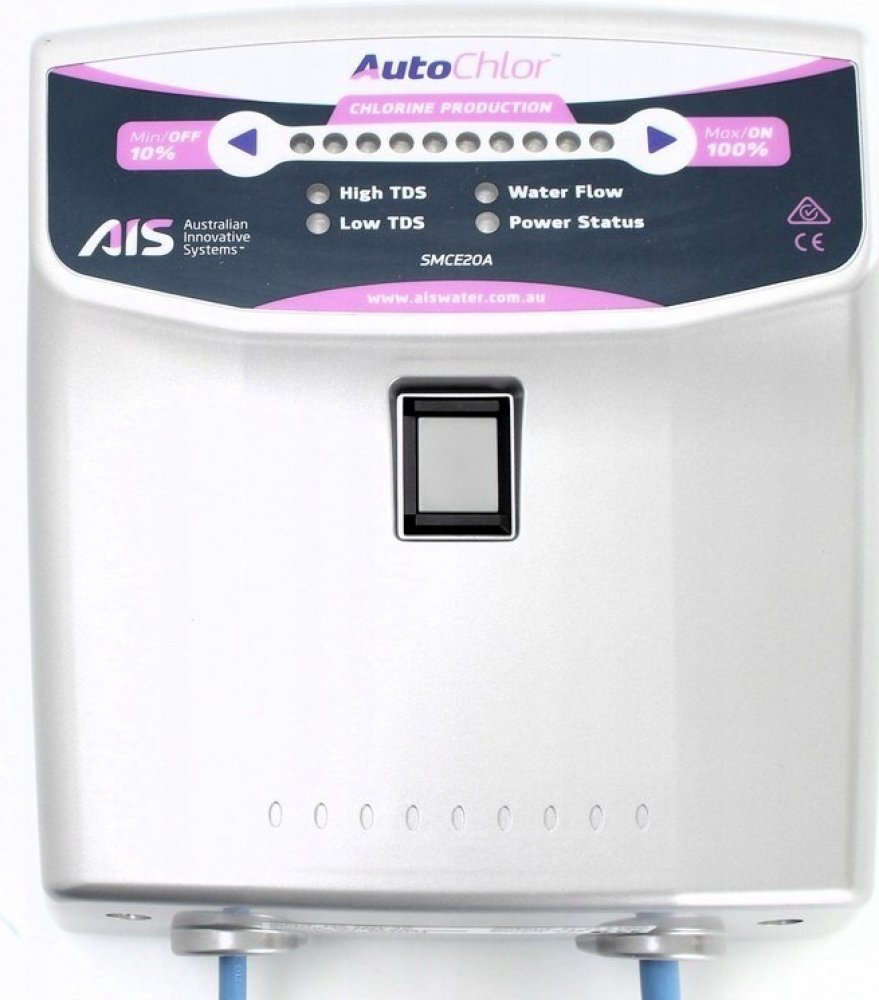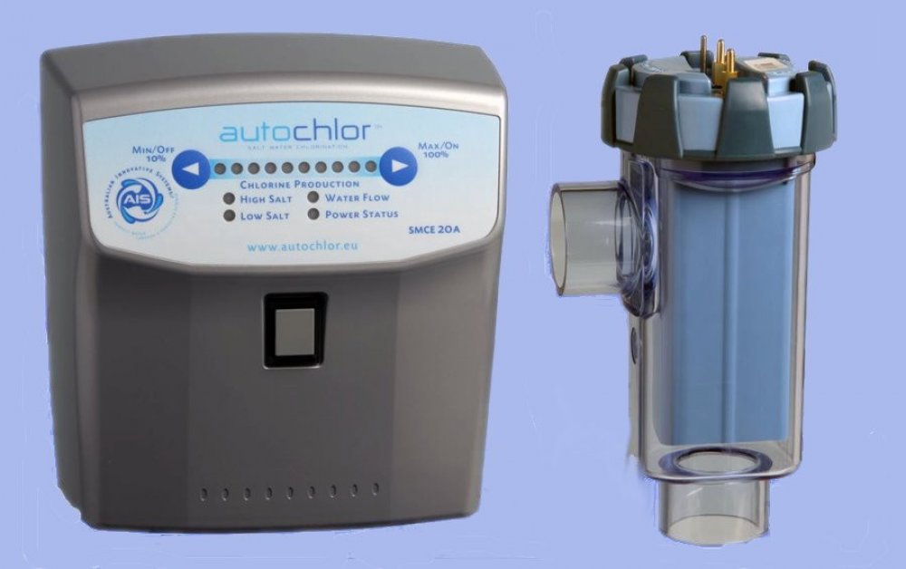 AutoChlor Oceanic SMC 30 - slaná voda v bazénu - salinátor (solinátor) Úprava bazénové vody elektrolýzou slané vody. Elektrolýzou slané vody dochází k uvolňování volného chlóru a k okamžité dezinfekci. TIP POOLSERVISU:Tento salinátor instalujeme nejčastěji. Osvědčil se nám mezi konkurečními výrobky nejvíce. Kombinují jak vysokou výdrž elektrolytických desek, tak jednoduchou instalaci a především bezporuchovost. Úprava bazénové vody elektrolýzou slané vody. Elektrolýzou slané vody dochází k uvolňování volného chlóru a k okamžité dezinfekci. - tímto způsobem ošetřená voda nezapáchá chemikáliemi, protože systém zabraňuje vzniku chloraminu, který je příčinou nepříjemného zápachu - voda v bazénu by měla být mírně slaná: 4,5–6,5 gramy na litr vody - z této soli vytvoří systém Autochlor chlór díky štěpení molekul soli (NaCl), které se rozdělí na sodík (Na) a chlór (Cl) - této reakce je dosaženo nízkým napětím v nerozpustných titanových elektrodách - životnost 12 000 provozních hodin Produkce chloru 30g/h Spotřeba při výkonu 100% 330W Ukázky aplikací Autochlor Oceanic SMC 30 - Recenze Zařízení je třeba instalovat jako poslední článek filtračního okruhu - voda proteče salinátorem a pak už teče rovnou do trysek bazénu. Na obrázku můžete vidět zařízení fungující na 70% výkonu. Pří velkém vytížení je možné snadno přednastavit na vyšší výkon a voda zůstává čístá i ve velkých vedrech. Na obrázku můžete vidět zařízení fungující na 70% výkonu. Pří velkém vytížení je možné snadno přednastavit na vyšší výkon a voda zůstává čístá i ve velkých vedrech. Zařízení není možné mít na dešti, skrytí v zahradním domku nebo přístřešku je ideální. Při použití slané vody v bazénu musí být nejen prvky v bazénu, ale také motory filtrace nebo protiproudu odolné vůči soli. Upozornění: Při použití Systému Autochlor nesmí být v bazénu přítomnost žádné nerezové části (pouze titan), protože při spuštění by mohlo dojít k okamžité korozi. Reverzní samočistící. Skladem. Nový design řídící jednotky 2017. + Desinfekce bazénu bez starosti + Vyrobeno v Austrálii + reverzní mechanismus - nezanáší se a čistí se sama! - pro velikost 45 - 95 m3