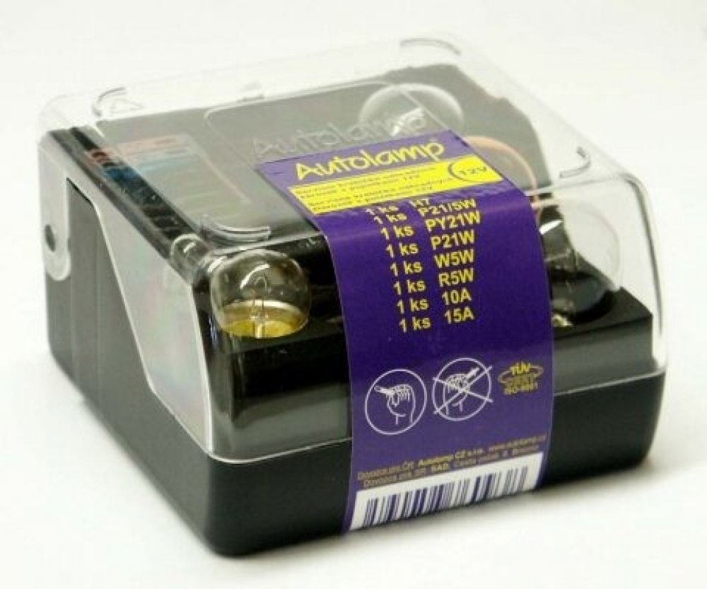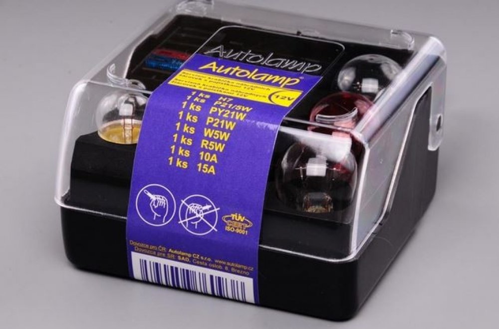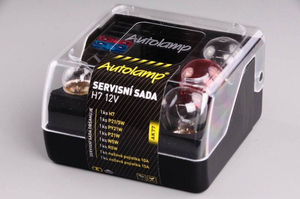 Sada autožárovek H7Sada obsahuje běžné žárovky i pojistky a žárovku H7 pro hlavní světlomety. Balení obsahuje: 1ks H7 1ks P21/5W 1ks PY21W 1ks P21W 1ks W5W 1ks R5W 1ks nožová pojistka 10A 1ks nožová pojistka 15A Konkurenční objednací čísla: AK77 Autolamp AK77 Nezařazený díl Autolamp CZ, s.r.o.