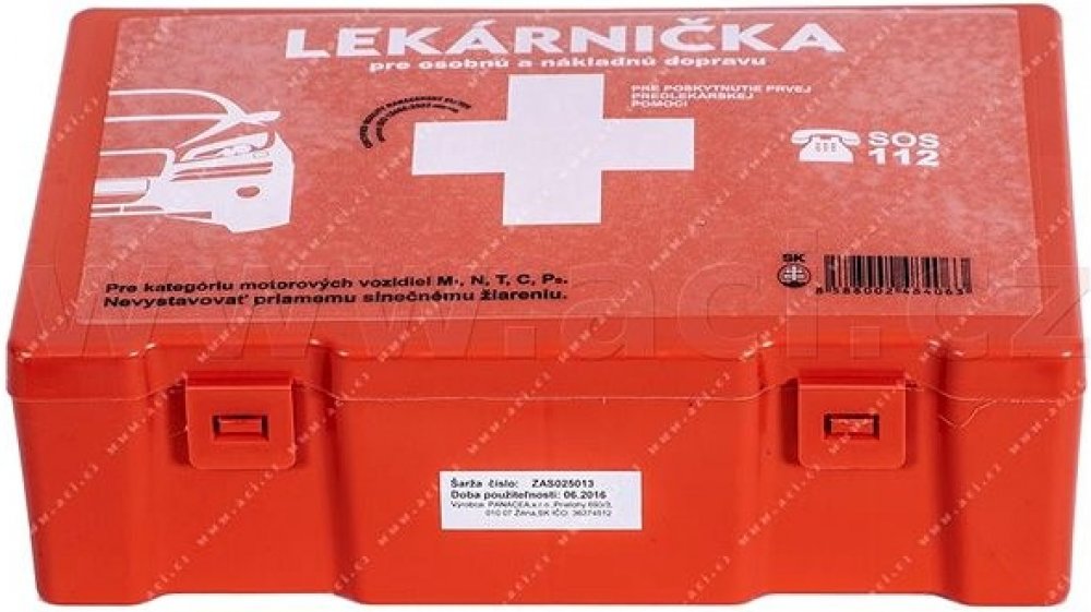 Autolékárnička ACI je určená pro kategorii motorových vozidel M1, N, T, C a Ps. Splňuje požadavky směrnice MZ SR č.143/2009. Disponuje plastovým obalem a je zafóliovaná. Autolékárnička ACI obsahuje kartu první pomoci a další pomůcky a potřeby pro první pomoc. Klíčové vlastnosti autolékárničky ACI SK - plastové (výbava dle vyhlášky MZ SR č.143 / 2009) oranžovéAutolékárnička určená pro kategorii motorových vozidel M1, N, T, C a PsSplňuje požadavky směrnice MZ SR č.143/2009Disponuje plastovým obalem Autolékárnička ACI obsahuje kartu první pomoci a další pomůcky a potřeby pro první pomoc