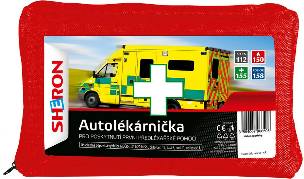 Odpovídá novým požadavkům vyhl. č. 216/2010 Sb. V povinném vybavení např: resuscitační maska s výdechovou chlopní, isotermická folie, leták o postupu při zvládání dopravní nehody (kartu první pomoci)… Lékárny vyhověly ve všech parametrech v testu Práva, 8.října 2010. Kvalitní výrobek odpovídající platným vyhláškám. Provedení kortexinový obal: odolný, tvárný a snadno se vejde do jakéhokoliv prostoru. Textilní lékárnička je umístitelná do jakéhokoliv prostoru. Má nepřehlédnutelný červený obal plastového provedení. Splňuje vyhlášku č. 341/2014 Sb.