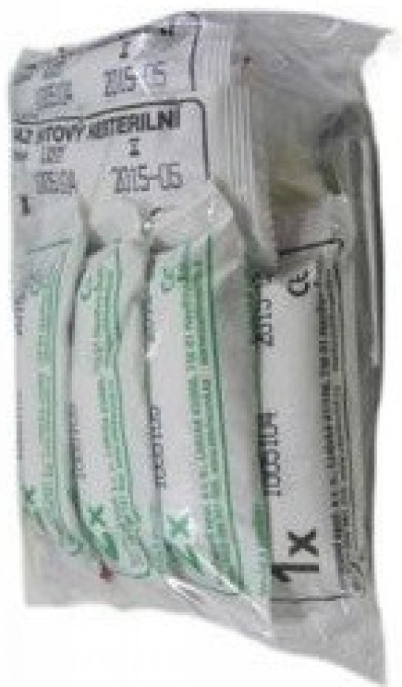 - Sterilní obvazy s 2 polštářky (šířka nejméně 8 cm, savost 800 g/m2) – 3 kusy