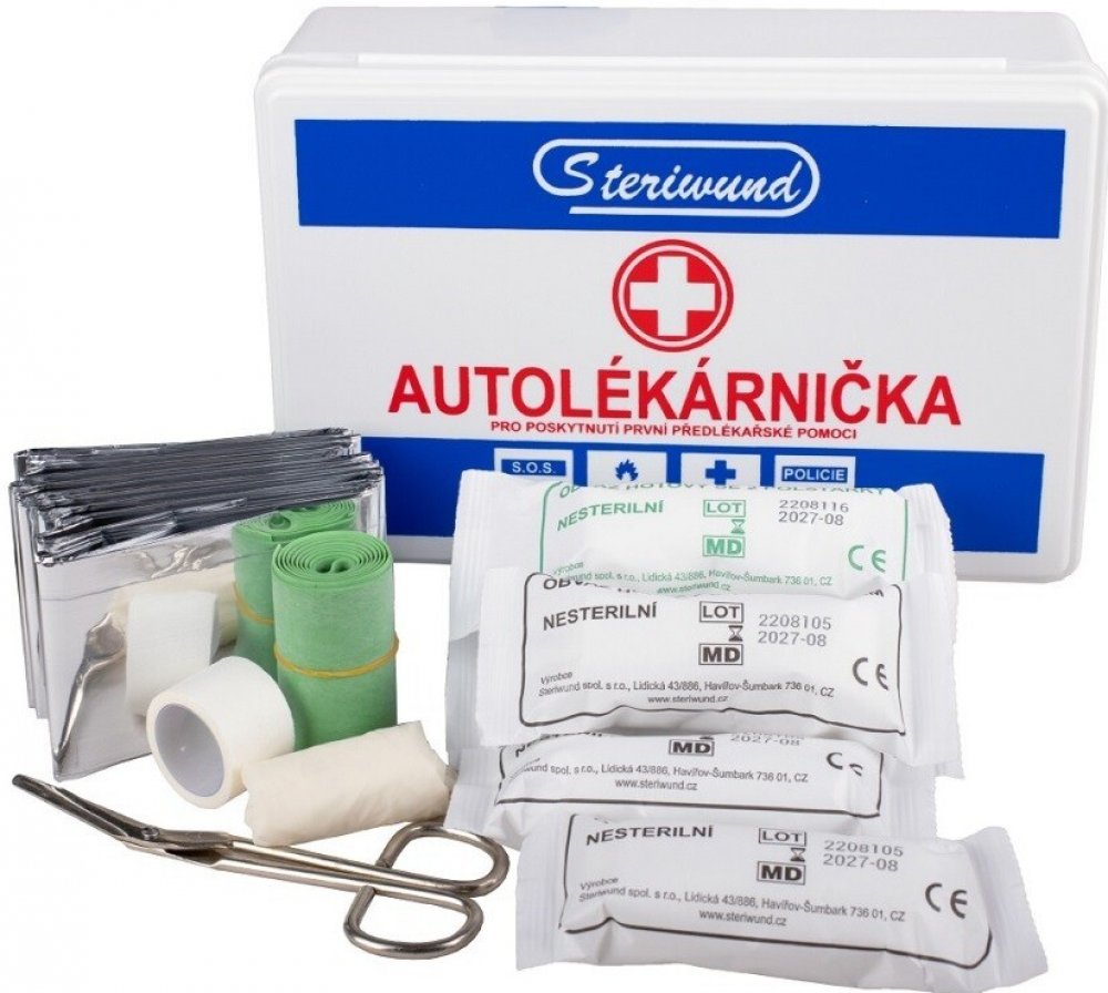 Autolékárnička slouží k poskytnutí předlékařské první pomoci. Jednotlivé komponenty splňují veškeré požadavky vyhlášky číslo 206/2018 Sb.