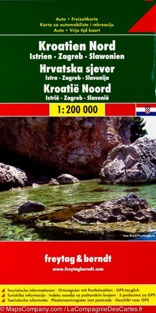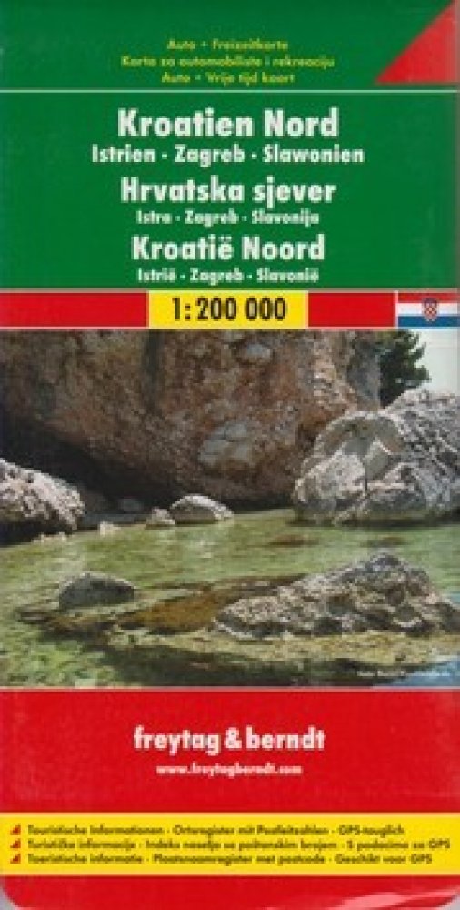 Kromě přehledného designu má silniční mapa „Chorvatsko sever 1:200 000“ mnoho dalších informací, jako jsou stav vozovky, památky a kempy. Rychlou orientaci umožňuje i rozsáhlý lokační index. Turistické informace, index polohy s PSČ, kompatibilní s GPS, oboustranný; Automapy freytag & berndt jsou dostupné pro mnoho zemí a regionů po celém světě.