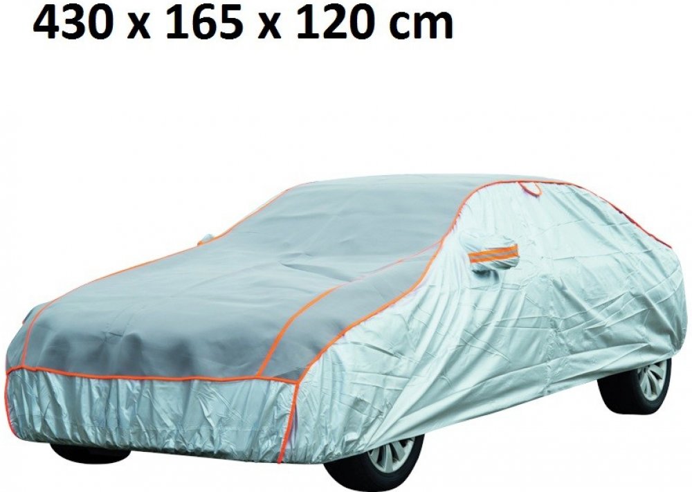 **Plachta na auto ve velikosti M.** Chrání vozidlo před vlivy počasí, před slunečním zářením, deštěm i sněhem. Povrch je plněný pěnovým materiálem čímž je ochranná vrstva hrubší o 5 mm.