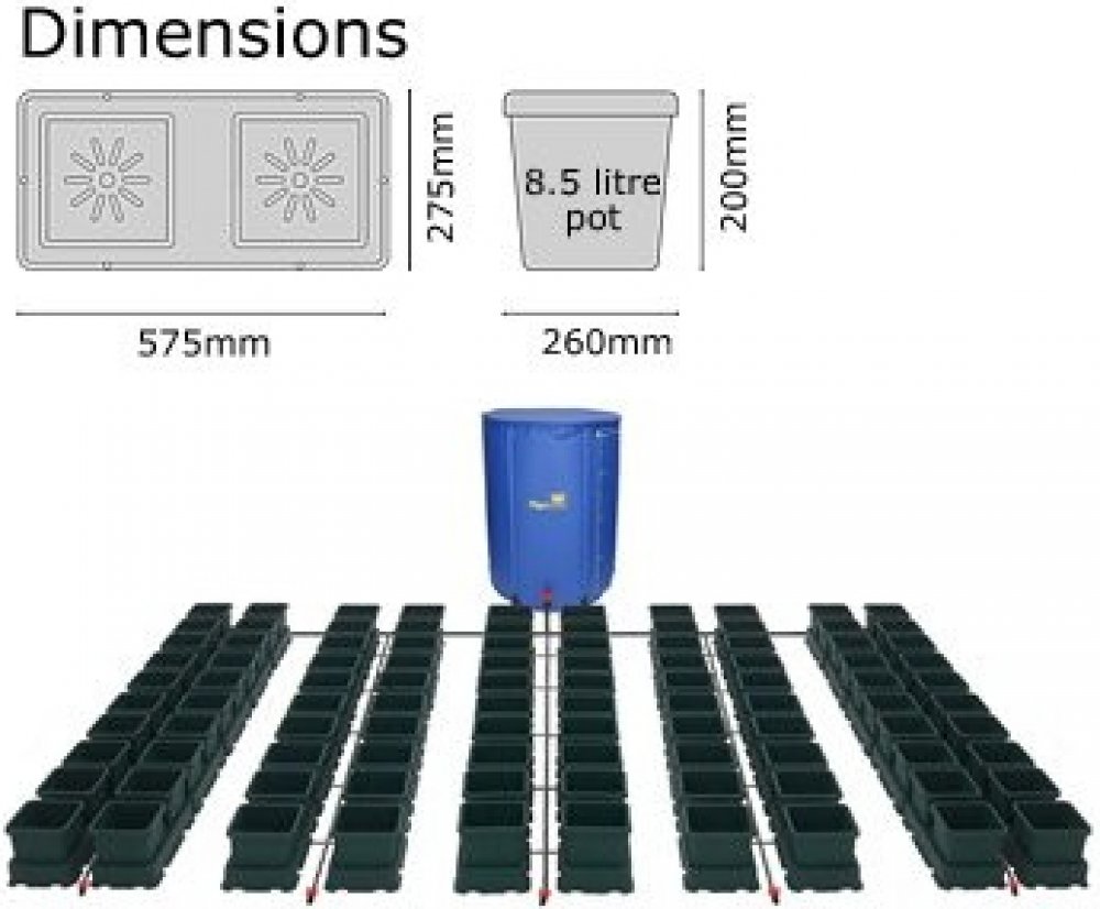 Každý Easy2grow Kit lze rozšiřovat o další květináče. Automatický závlahový systém Autopot Easy2grow Kit je dodáván včetně nádrže o objemu 100 litrů, sadou 8,5 litrových květináčů, kompletním příslušenstvím a návodem v českém jazyce.