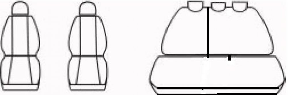 Zadní opěradlo dělené za spolujezdcem, otvory pro 3 bodové pásy, zadní lavice nedělená, 5 opěrek hlavy, kapsy, přídavná kapsička na drobnosti v sedadle řidiče.Silné polstrování, laminovaná spodní vrstva textilního materiálu. Silná látka i na zadních dílech potahů (ž...