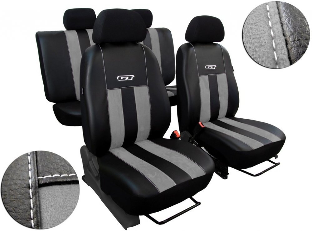 Velmi kvalitní, silné autopotahy VW T4 z čalounické syntetické kůže a alcantary. Tuningové autopotahy.Středové pruhy z textilní alcantary. Moderní výšivka GT. Jediněčný tuningový vzhled luxusníh...