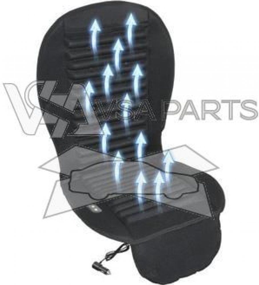 Potah sedadla z velice příjemného materiálu s ventilátorem pro ventilaci zádové a sedací části. Integrovaný ovladač zajistí snadnou volbu jednoho ze tří stupňů intenzity větrání sedací a zádové části. Potah je ideálním doplňkem pro příjemnou jízdu v horkých ročních obdobích. Zapojení do běžné zásuvky automobilového zapalovače pomocí 12V konektoru. Univerzální systém upevnění pomocí háčků a pružných popruhů, kterými lze připevnit na většinu běžně používaných automobilových sedadel. Potah lze použít i na sedadlech, která mají zabudovaný boční airbag přímo v opěradle předních sedadel.