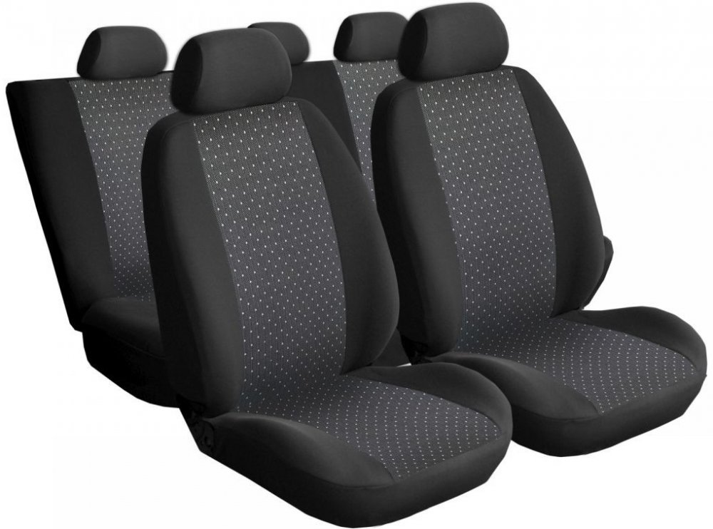 Přesné autopotahy Škoda Fabia II, dělené zadní opěradlo a sedadlo. Sada obsahuje všechny druhy opěrek hlavy ( 7 kusů ), pro modelovou řadu před a po faceliftingu.