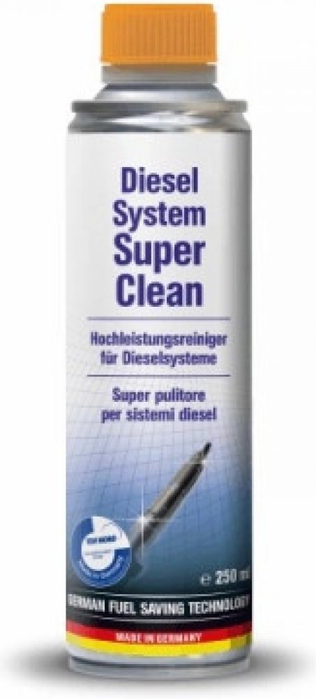 Diesel System Super Clean je vysoce výkonný čistič pro dieselové motory. Produkt je optimalizován pro použití v autech s filtrem pevných částic a obsahuje jen bezpopelnaté ingredience. Je doporučen pro vozidla s turbem i s katalyzátorem. Diesel System Super Clean má excelentní čistící účinky. Eliminuje znečištění způsobené provozem v celém palivovém systému. Odstraňuje pryskyřičný povlak a uvolňuj...