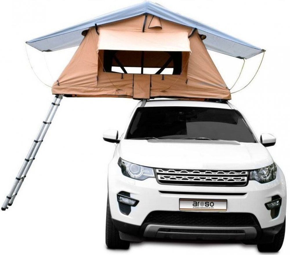 Autostan Aroso Harz pro 3 osoby - pískový, Autostany. Střešní stan Aroso Harz je ideálním řešením pro pohodlné a flexibilní cestování v přírodě. Tento kvalitní výrobek německé značky Aroso, fungující od roku 1973, nabízí dokonalý konfort. Robustní konstrukce stanu je vyrobena z kombinace odolné polyesterové bavlny a nepromokavé plachty, která zajišťuje vysokou odolnost proti vodě a povětrnostním vlivům.