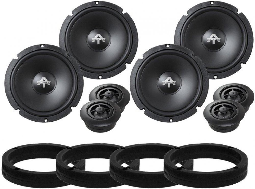 Do zadních dveří: Ohm 1 pár komponentních reproduktorů Autotek ATX6.2C (2x středobas, 2x výška, výhybky) Ohm 1 pár MDF podložek přesně pro Volkswagen Golf IV z roku 1997-2003 do zadních dveří (2ks MDF podložek)