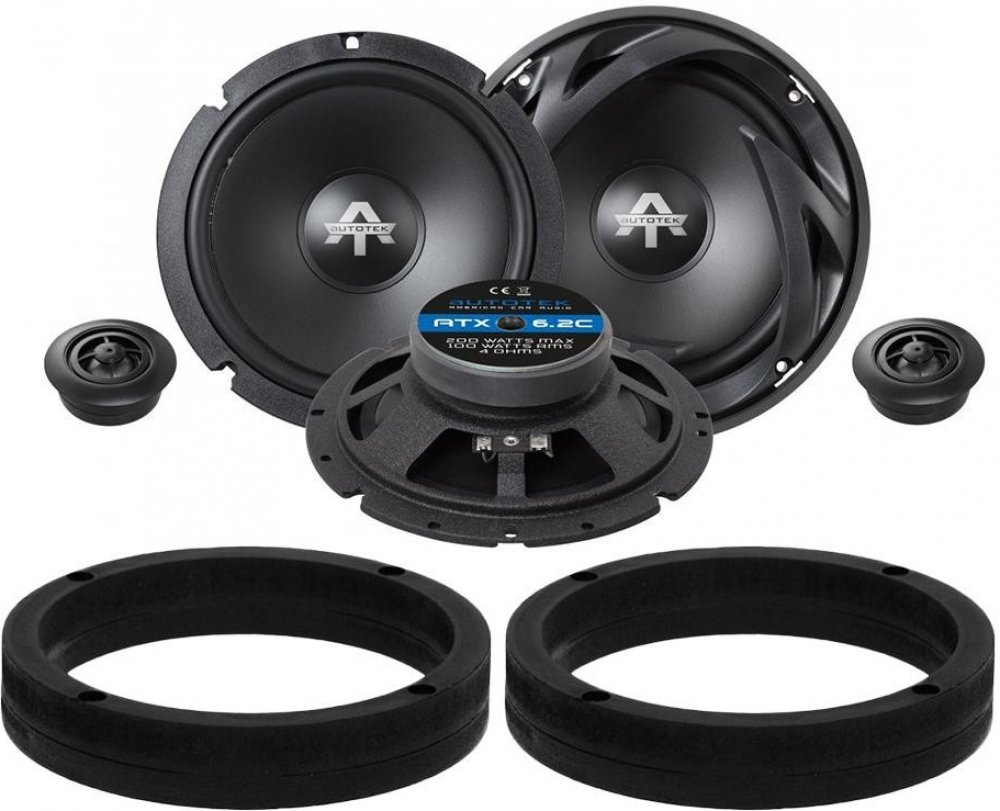 Ohm 1 pár komponentních reproduktorů Autotek ATX6.2C (2x středobas, 2x výška, výhybky, montážní materiál ) Ohm 1 pár MDF podložek přesně pro Škoda Fabia I do předních dveří ( 2 ks MDF podložek )