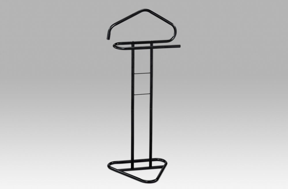 Praktický němý sluha v minimalistickém designu. Konstrukce je z kovových trubek pr. 19 mm. Povrchová úprava je v černém matném práškovém laku. Výška 108 cm Vám umožní zavěšení oblečení i doplňků bez pomačkání. Nosnost stojanu jsou 4 kg, hmotnost necelé 2 kg. I proto je jednoduše přenositelný a lze ho umístit podle momentální potřeby i nálady. Stylem a jednoduchostí se hodí do jakéhokoli interiéru....