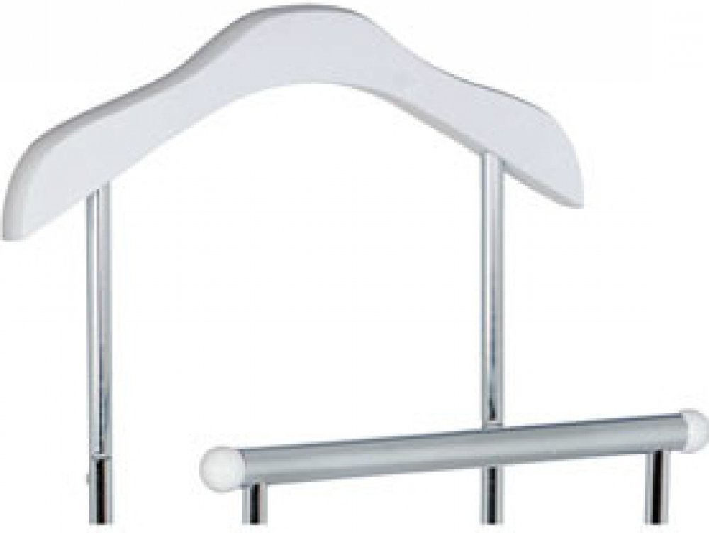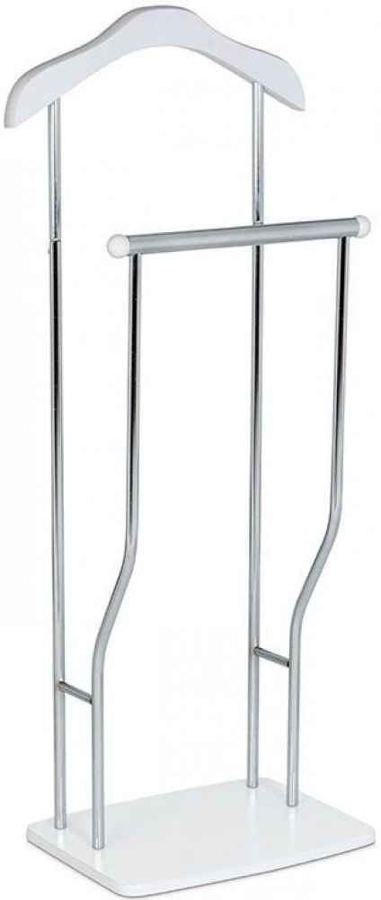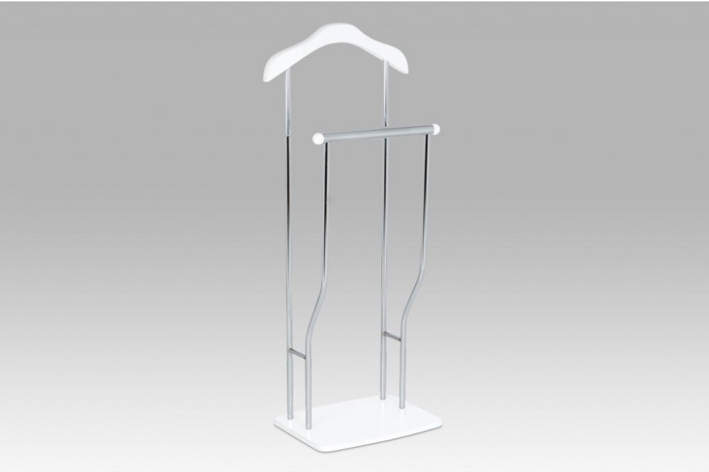 Praktický minimalistický němý sluha v nádechu retra v sobě kombinuje výrazné prvky z MDF v elegantním bílém matném laku s kovovými nosnými díly v chromované povrchové úpravě. Výška 108 cm Vám umožní zavěšení oblečení i doplňků zcela bez pomačkání. Nosnost stojanu je až 6 kg rovnoměrně rozprostřené zátěže, hmotnost 4 kg. I proto je jednoduše přenositelný a lze jej umístit podle momentální potřeby i nálady. Stylem a jednoduchostí se hodí do jakéhokoli interiéru. Využití je nepřeberné, záleží jen na Vás.