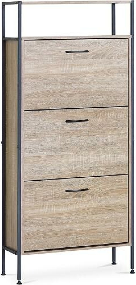 Botník s třemi přihrádkami a dvěma policemi nabízí praktické řešení pro uspořádání obuvi v domácnosti. Desky jsou vyrobeny z MDF v dekoru dub, který přináší přírodní odstíny a decentní strukturu dřeva. Stabilní kovová podnož zajišťuje pevnou oporu a lehkost celkového provedení. Každá přihrádka je opatřena černou úzkou úchytkou pro snadné otevírání a zavírání. Kompaktní rozměry umožňují umístění do...