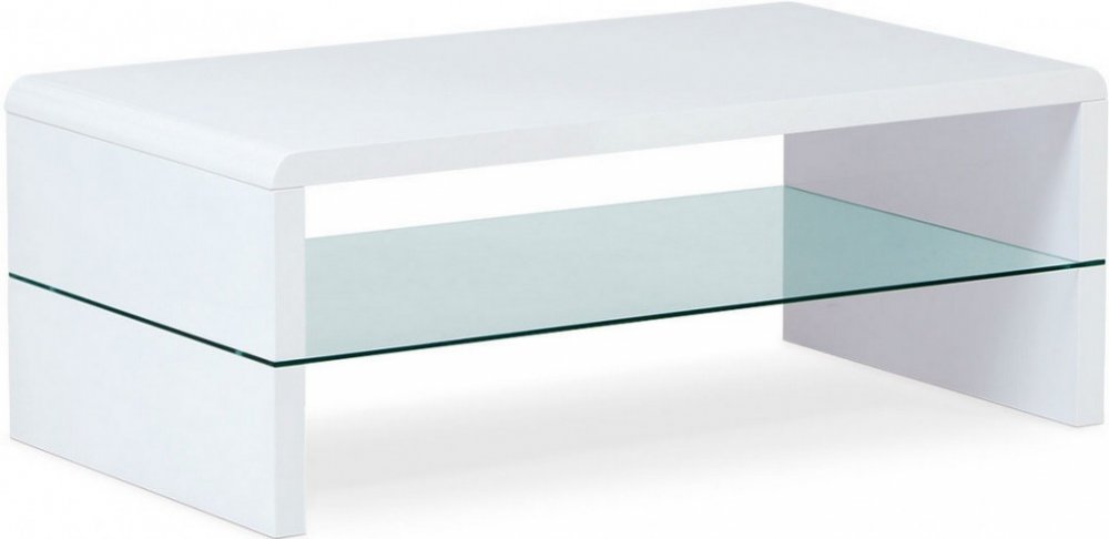 Konferenční stolek je vyroben z MDF desek s lakovanou povrchovou úpravou v provedení vysoký lesk bílý. Stolek obsahuje skleněnou odkládací poličku z čirého skla tloušťky 6 mm.