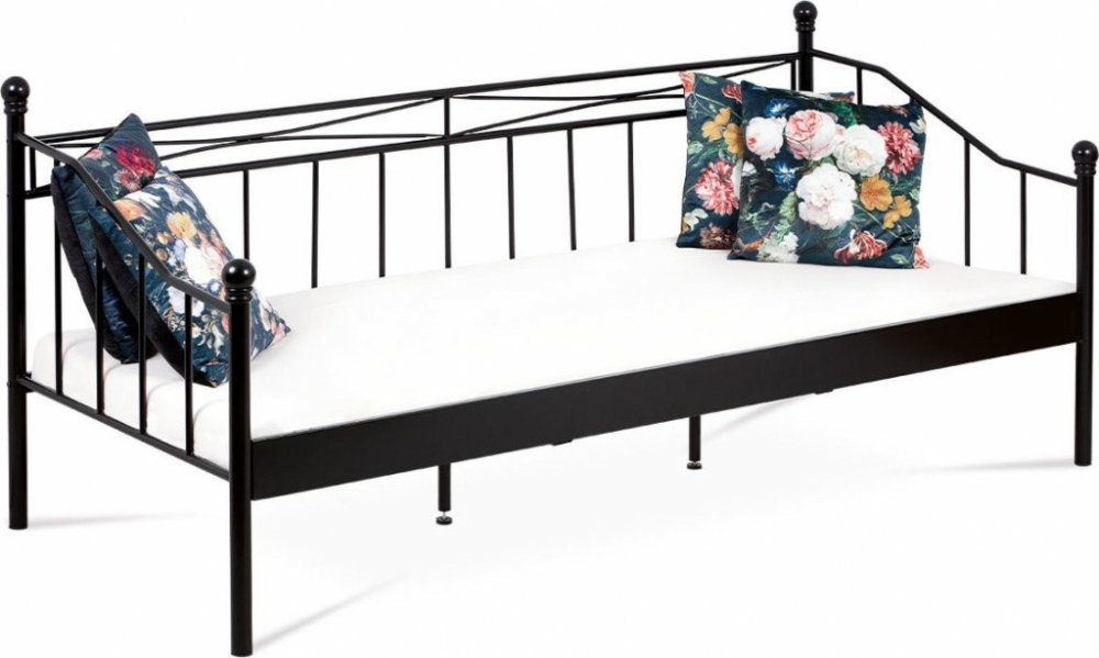 Jednolůžková kovová postel matné černé barvy. Výška bočnic je 39 cm, postel je vhodná pro matraci o rozměru 90x200 cm. Postel je dodávána bez matrace a roštu. Nosnost 100 kg.