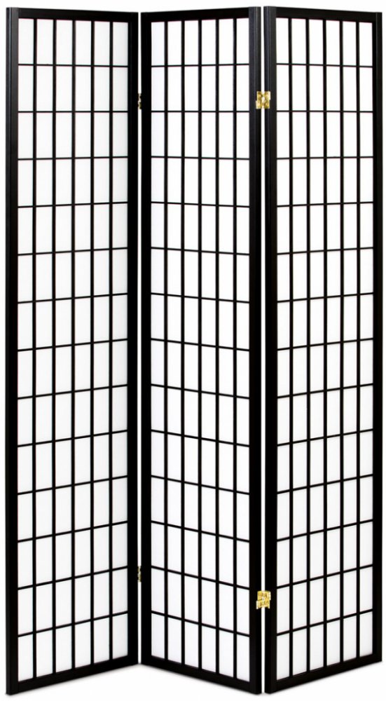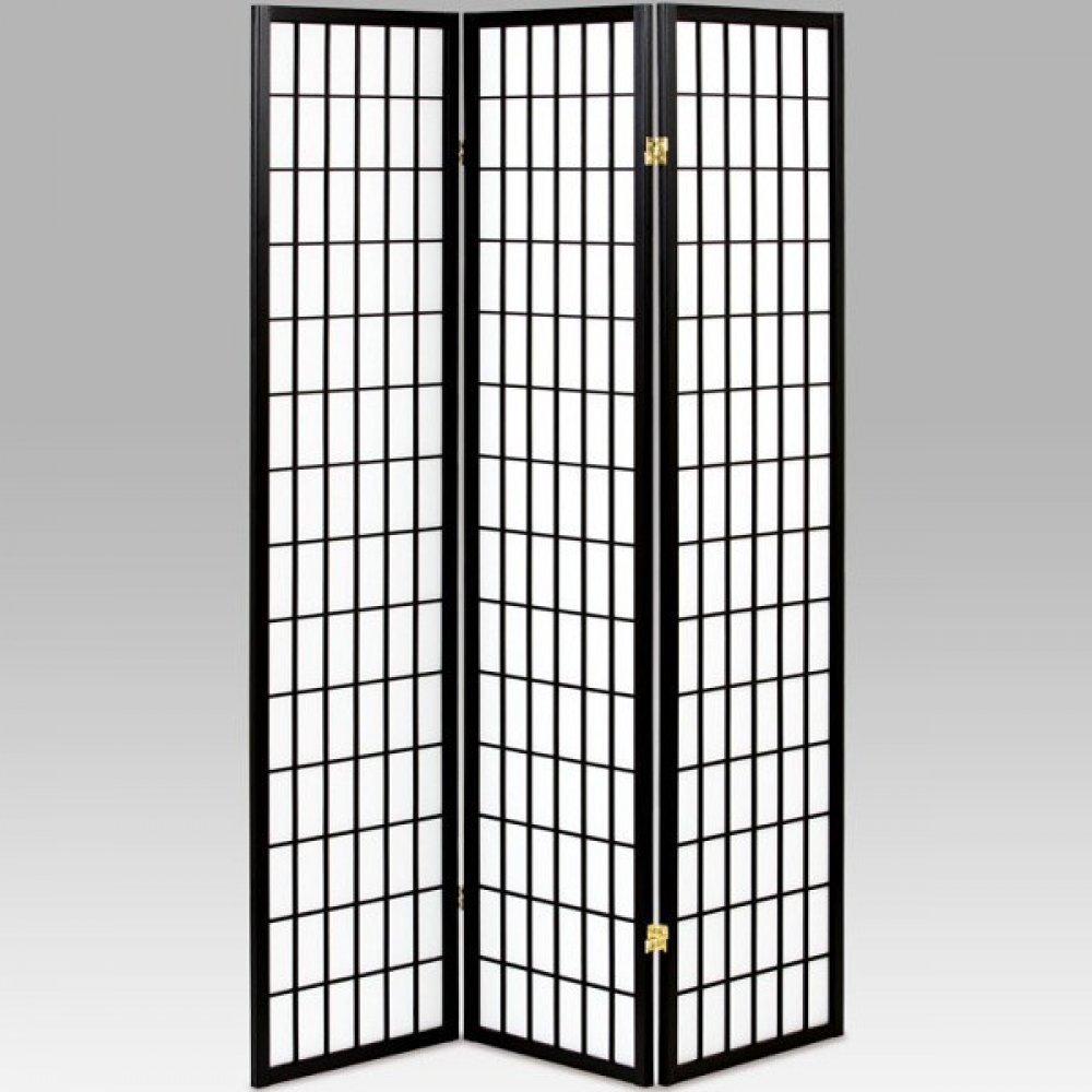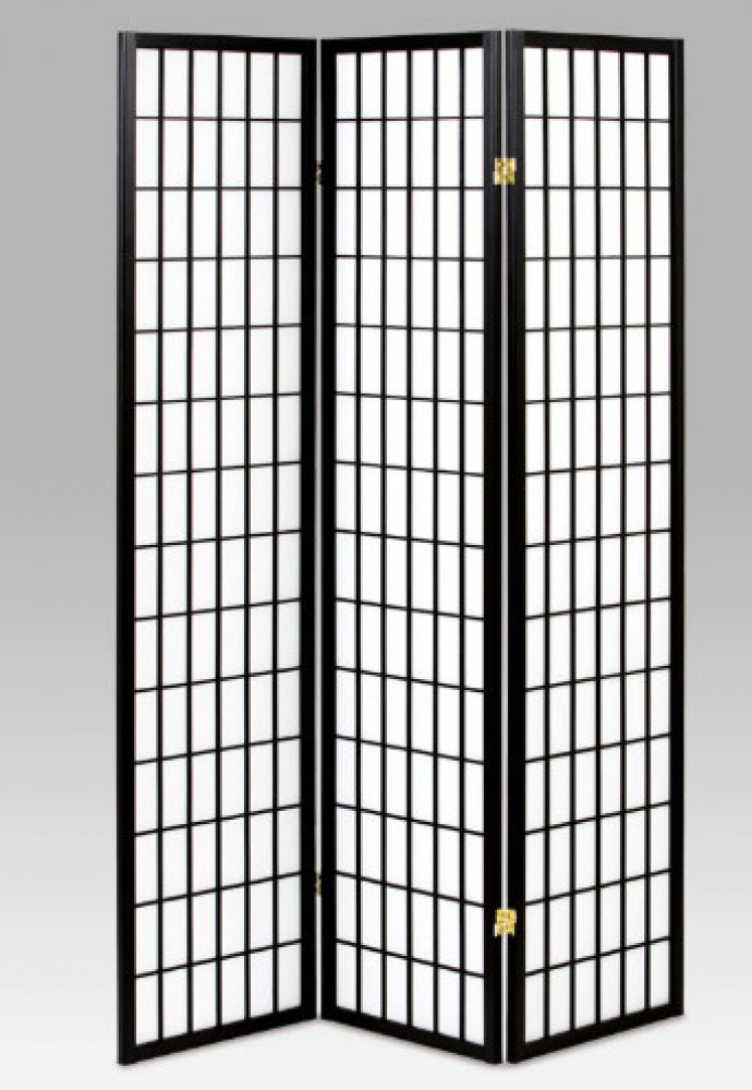3dílný volně stojící paraván s konstrukcí z masivního smrkového dřeva v černé matné barvě a výplní z bílé netkané textilie. Plní nejen funkci okrasnou, ale také praktickou. Lze jej použít jako zástěnu nebo diskrétní i optickou dělící příčku nejen v bytě, ale i v komerčních prostorách. Díky skládací konstrukci a celkové nízké hmotnosti jej lze bez problémů přemísťovat a manipulovat s ním. Kombinace dřeva a netkané textilie působí vzdušným dojmem, stylově lze paraván umístit do jakkoli zařízeného interiéru. V každém si najde zasloužené místo. Výška paravánu je 180 cm, šíře jednoho dílu 43,5 cm, celková plná šíře je 132 cm. Tloušťka stěny jsou 2 cm. Stěny paravánu jsou k sobě připevněny kovovými pomosazenými panty. Celková hmotnost je 5 kg.
