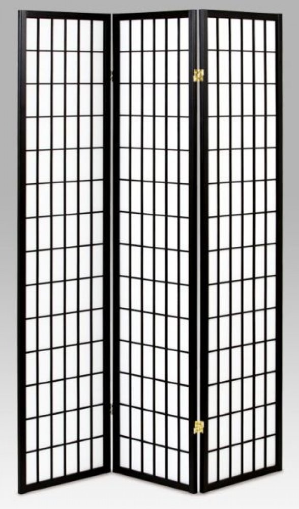 3dílný volně stojící paraván s konstrukcí z masivního smrkového dřeva v černé matné barvě a výplní z bílé netkané textilie. Plní nejen funkci okrasnou, ale také praktickou. Lze jej použít jako zástěnu nebo diskrétní i optickou dělící příčku nejen v bytě, ale i v komerčních prostor...