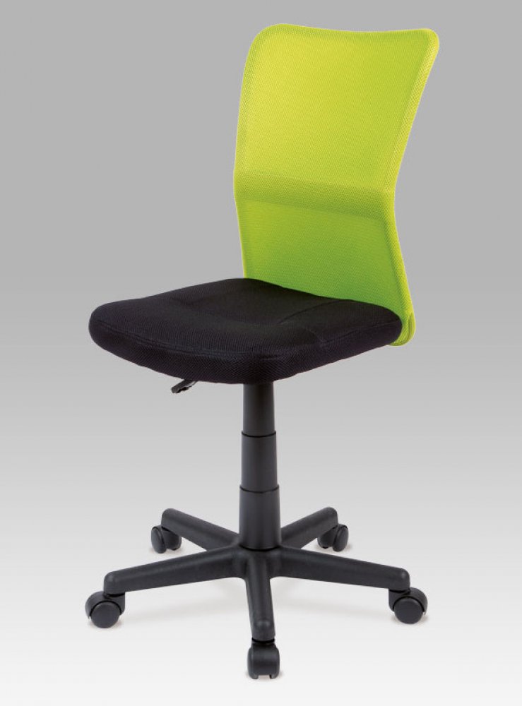 Dětská otočná židle se základním mechanismem je čalouněná látkou MESH ve stylové kombinaci zelené a černé barvy. Díky plynovému pístu je židle výškově nastavitelná. Nosnost do 60 kg .