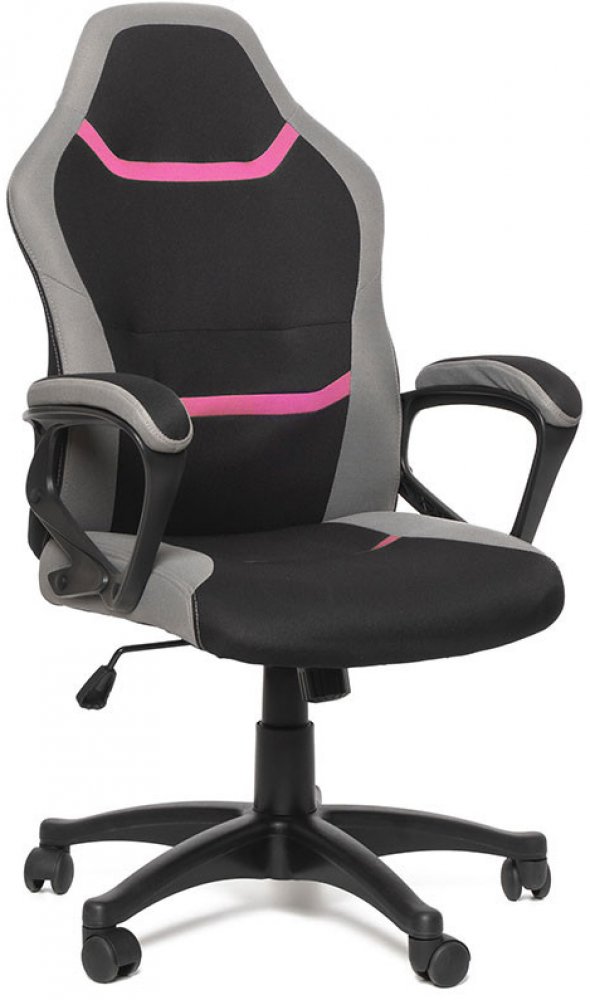Potah je kombinací černé a světle šedé látky hladké látky s decentním barevným detailem na opěráku i sedáku. Polstrování je z kvalitní PU pěny. Židle je vybavena houpacím mechanismem s nastavením protiváhy a s aretací v základní poloze. Tuhost protiváhy lze regulovat velkým plastovým šroubem, umístěným pod sedákem. Výška sezení se upravuje páčkou na pravé straně přes kvalitní plynový píst.