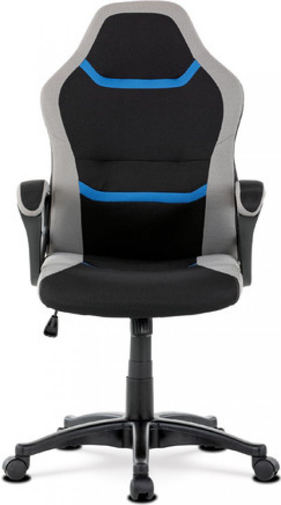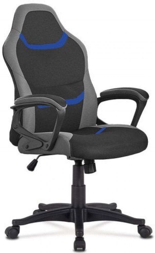 Potah je kombinací černé a světle šedé látky hladké látky s decentním barevným detailem na opěráku i sedáku. Polstrování je z kvalitní PU pěny. Židle je vybavena houpacím mechanismem s nas...