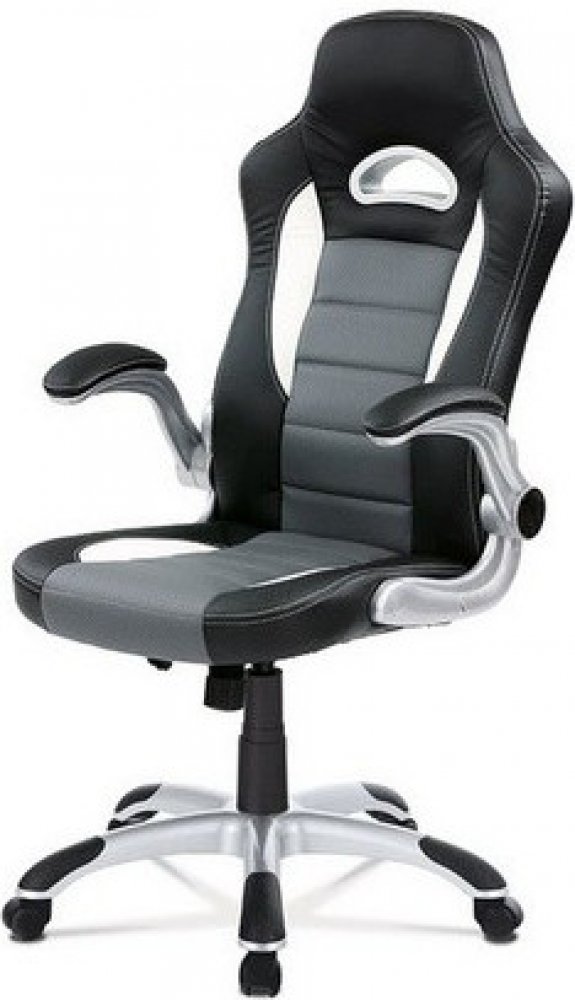 Velice populární model sportovním kancelářského křesla v designu sedačky závodního vozu a zaoblenými liniemi. Má skvělé ergonomické rozvržení. Potah je kombinací černé, bílé a šedé ekokůže s bílým prošíváním.