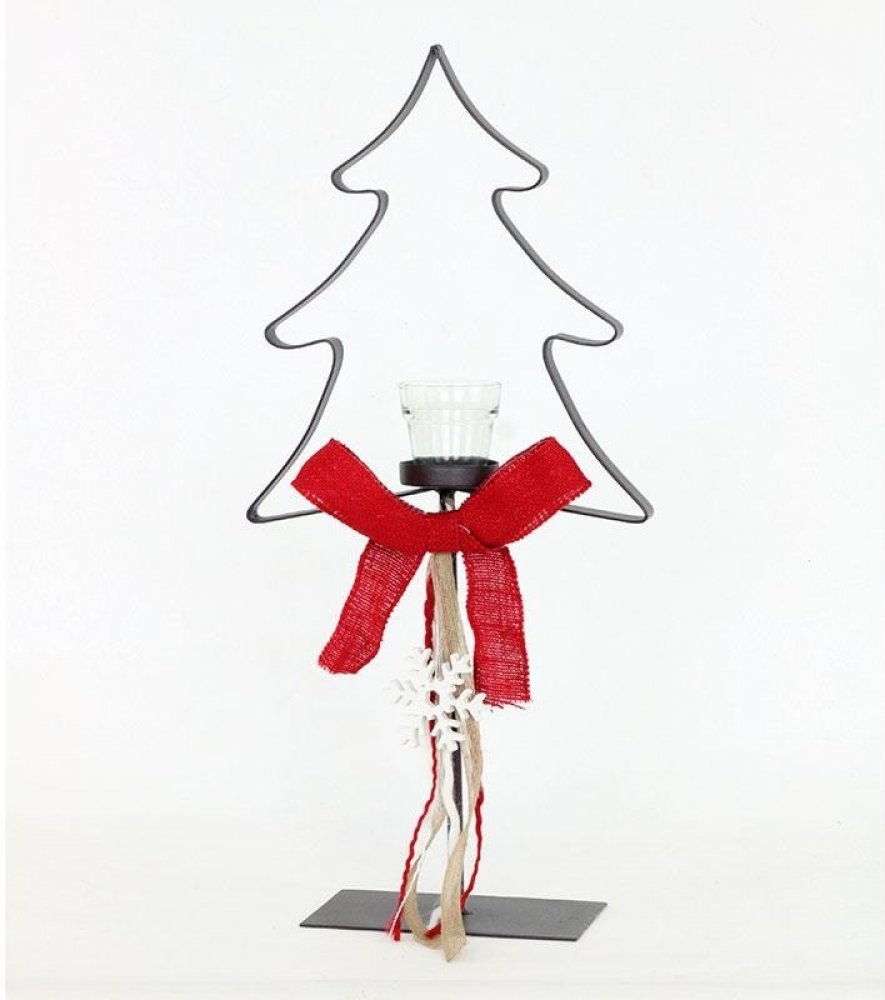 Bílý kovový svícen je novinkou těchto Vánoc. Součástí svícnu je ozdobná mašle s vločkou, která je pověšená pod bodcem na svíčku. Bodec je přizpůsoben pro vložení kónické svíčky. Tato nevšední dekorace má široké využití, můžete ji např. nadekorovat na Váš vánoční stůl nebo do okna.