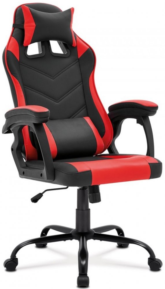 Herní židle RACER PRO v designu sedačky závodního vozu a zaoblenými liniemi a novou funkcí opěráku. Potah je kombinace černé, do V prošívané ekokůže a červené ekokůže na okrajích sedáku i opěráku a odnímatelných polštářcích. Polstrování je z kvalitní PU pěny. Nosnost 120 kg.