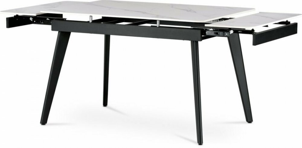 Designový jídelní rozkládací stůl o rozměru 120 + 30 + 30 x 80 cm v industriálním minimalistickém stylu. Vrchní stolová deska je tvrzené keramiky tl. 12 mm v matném dekoru "Bulharský šedý mramor". Konstrukce stolu i nohy jsou celokovové s nástřikem práškového vypalovacího laku v matném černém odstínu. Plastové kluzáky na nohách eliminují možnost počkození povrchů tvrdých podlah.