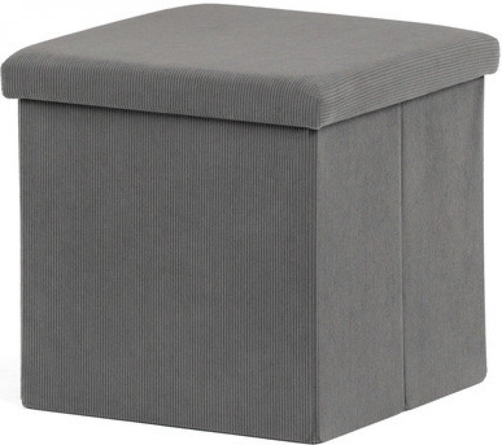 Skládací manšestrový taburet TAB-471 GREY6 v šedém odstínu je skvělou volbou pro ty, kdo hledají funkční a stylový doplněk do moderního interiéru. Potah z manšestrové látky dodává nábytku jemný, elegantní vzhled a zároveň působí útulně. Praktický úložný prostor uvnitř umožňuje snadné schování drobností, které chcete mít po ruce, ale ne na očích. Taburet je skládací, což oceníte zejména při úspoře místa. Díky vysoké nosnosti zvládne i každodenní používání jako sedací prvek. Stolička bez nohou, čtvercový tvar, s poličkou, materiál: textil a překližka, rozměry: 38 × 38 × 38 cm (V × Š × H) šedá barva