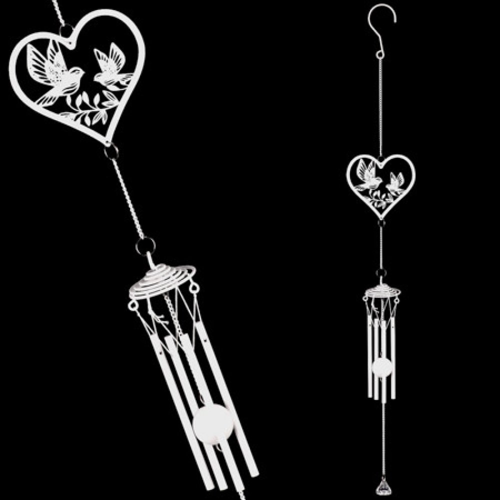 Zvonkohra kovová, bílá - srdce s ptáčky. 70 x 10x 5 cm