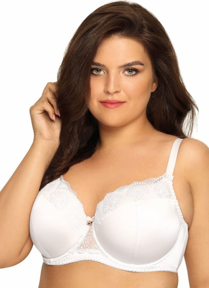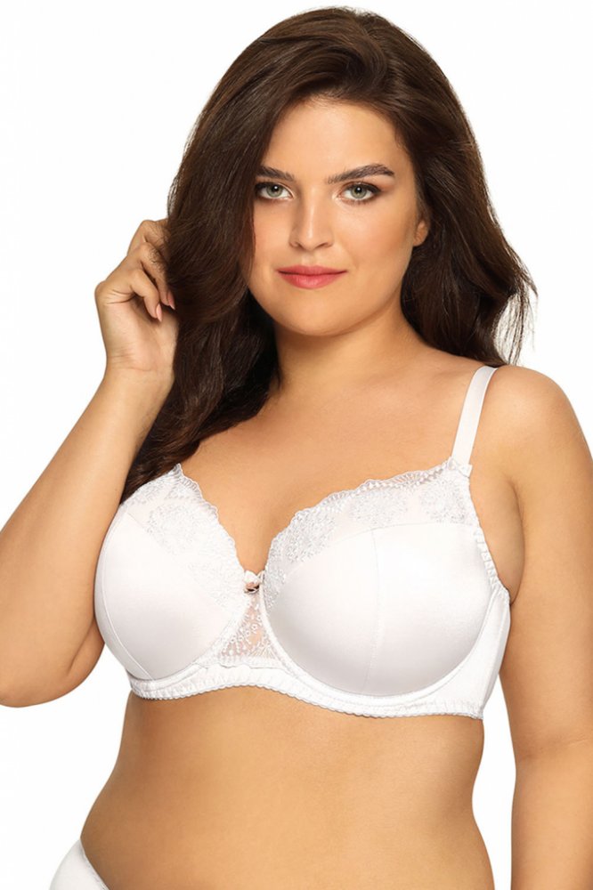 Vyztužená dámská podprsenka, která je vyrobená z mikrovlákna. Vrchní linii modelu tvoří efektní krajka s květinovým motivem. Košíčky jsou podšité bavlnou. Ramínka není možné odepnout. Šířka ramínek závisí na velikosti a rozměru podprsenky. Mezi košíčky je umístěná saténová mašlička s přívěskem Ava. Podprsenka má střih a konstrukci typu 924. Složení: 88 % polyamid, 8 % bavlna, 4 % elastan.