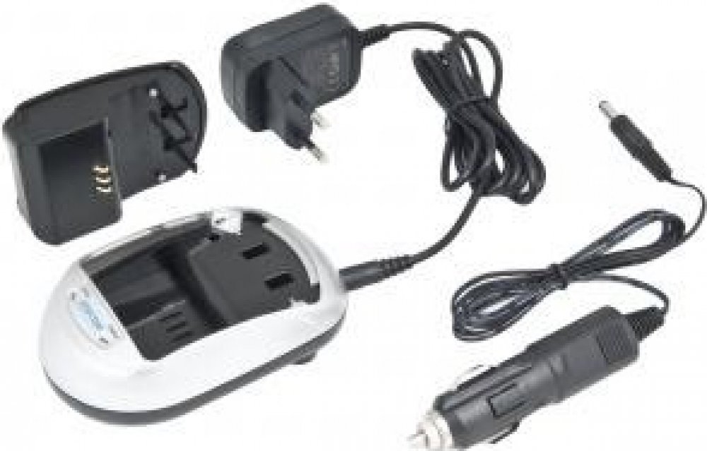 Balení obsahuje: nabíjecí základnu, redukci AVP, síťový adaptér na 100 - 240V, 12V autoadaptér do zapalovače, návod k použití.
