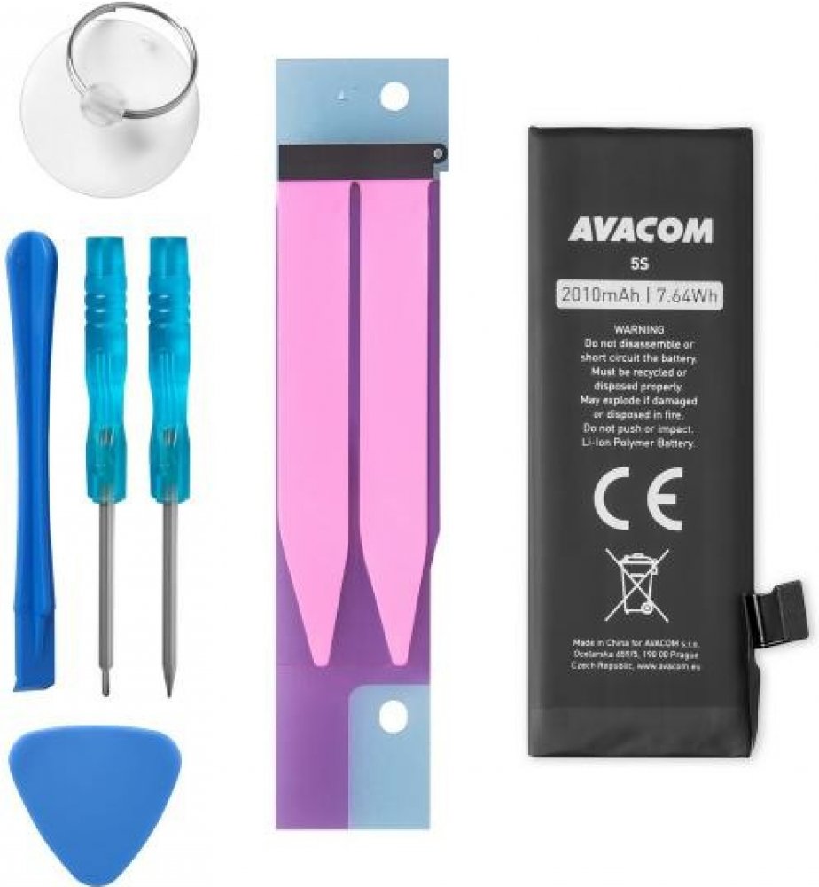 Balení obsahuje kompletní sadu nářadí pro výměnu baterie, ale i náhradní lepící pásky pro uchycení baterie.