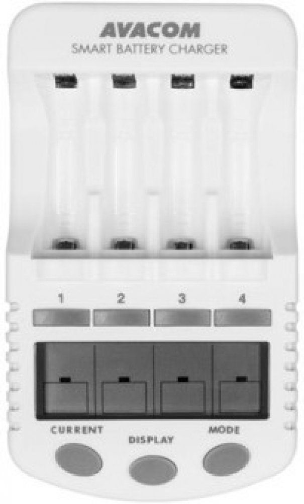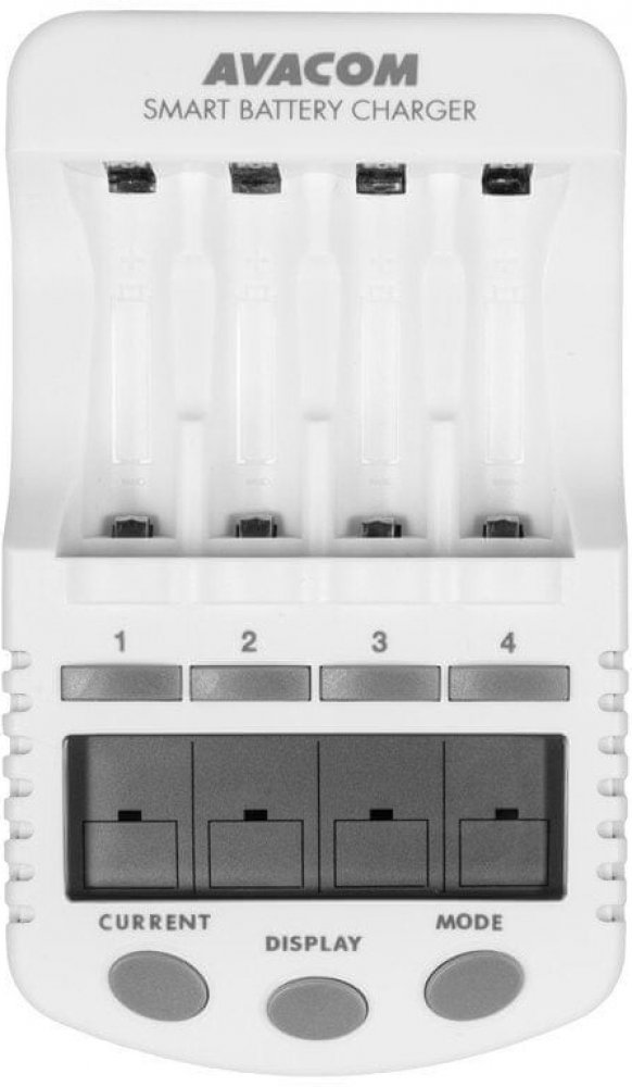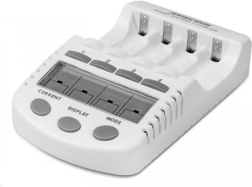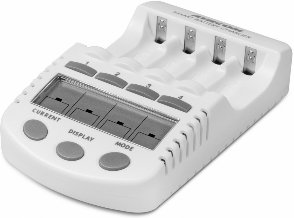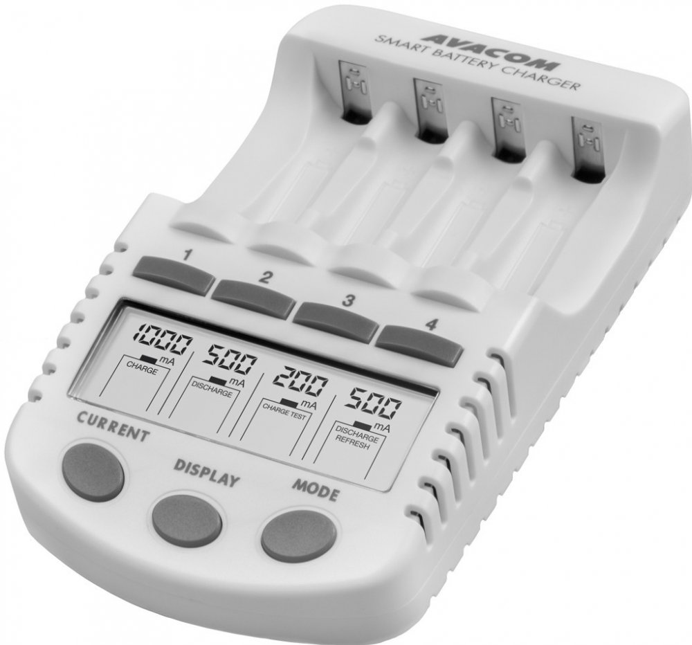 Inteligentní čtyřkanálová nabíječka tužkových AA a mikrotužkových AAA baterií. Nabíjí Ni-MH a Ni-Cd baterie. Nabíjecí proud 200, 500, 700 a 1000mA.