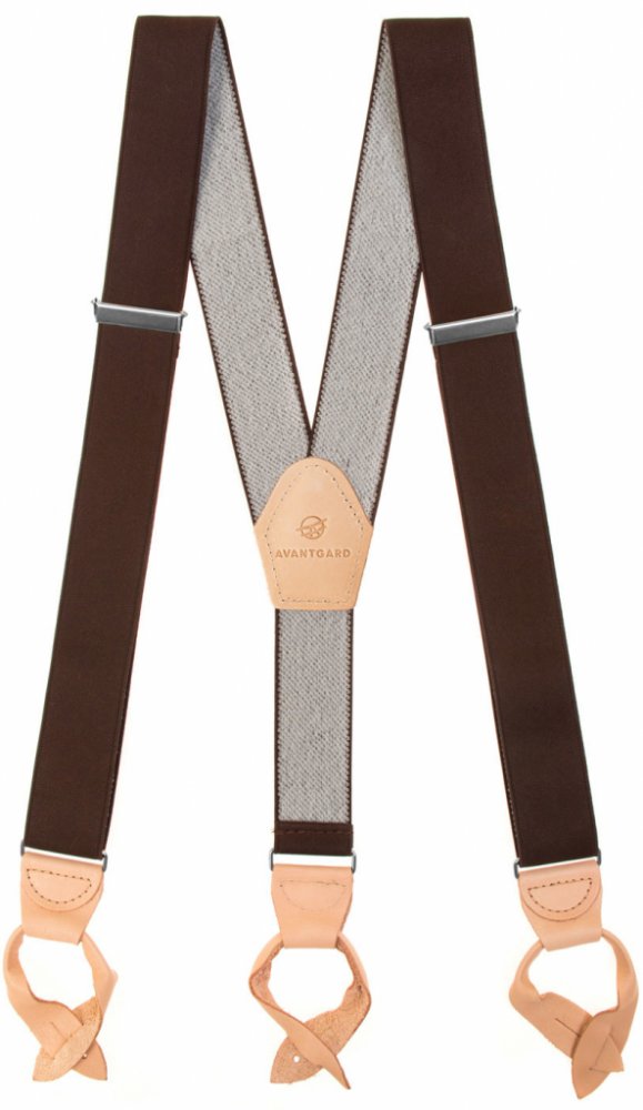 Šle Y s koženým středem a poutky - 35 mm, materiál 76 % polyester, 24 % elastan + pravá kůže, hnědá
