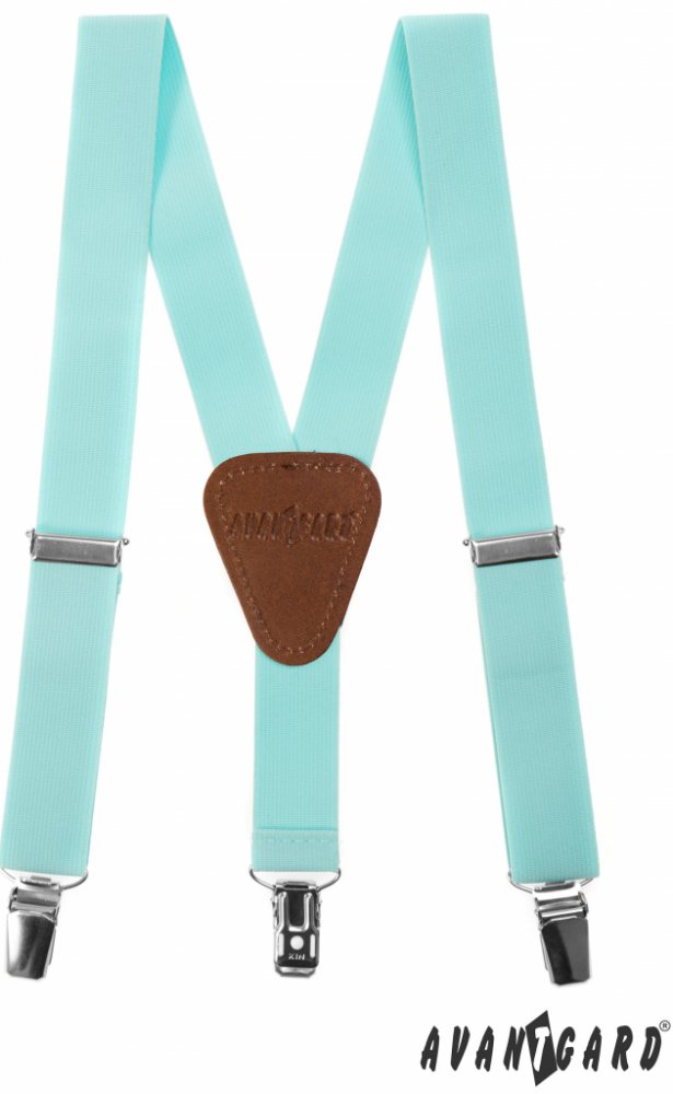Pohodlné chlapecké šle s uchycením na klip. Klasické tříbodové šle, elastnický široký popruh pro komfortní nošení - šířka cca 2,5 cm, středový díl z pravé kůže, kovové klipy.