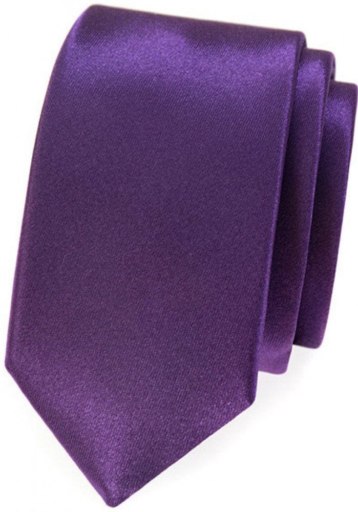 Lesklá fialová slim kravata o šířce 5 cm. Samozřejmostí je poutko na zastrčení kratšího konce kravaty. Kravata je šita českým výrobcem, který má více než 25 leté zkušenosti s jejich výrobou. Počítat tedy můžete s kvalitním doplňkem, který vydrží opravdu dlouho. Vzít si tuto kravatu můžete na svatbu, ples, na rande nebo třeba do divadla.