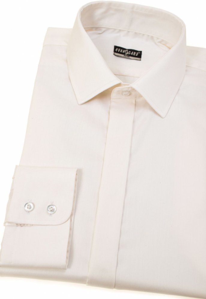 Pánská košile Avantgard vyštíhleného střihu SLIM s krytou légou a klasickým límcem. Model 132-225. Barva smetanová / ivory.