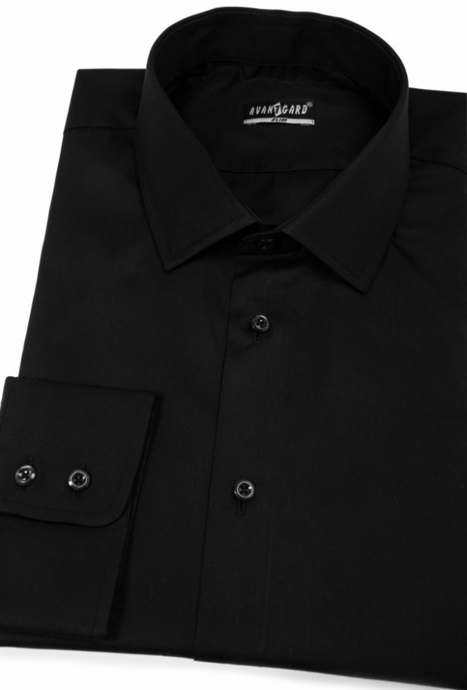 Pánská košile Avantgard vyštíhleného střihu SLIM s klasickým límcem. Model 109-2323. Barva černá.