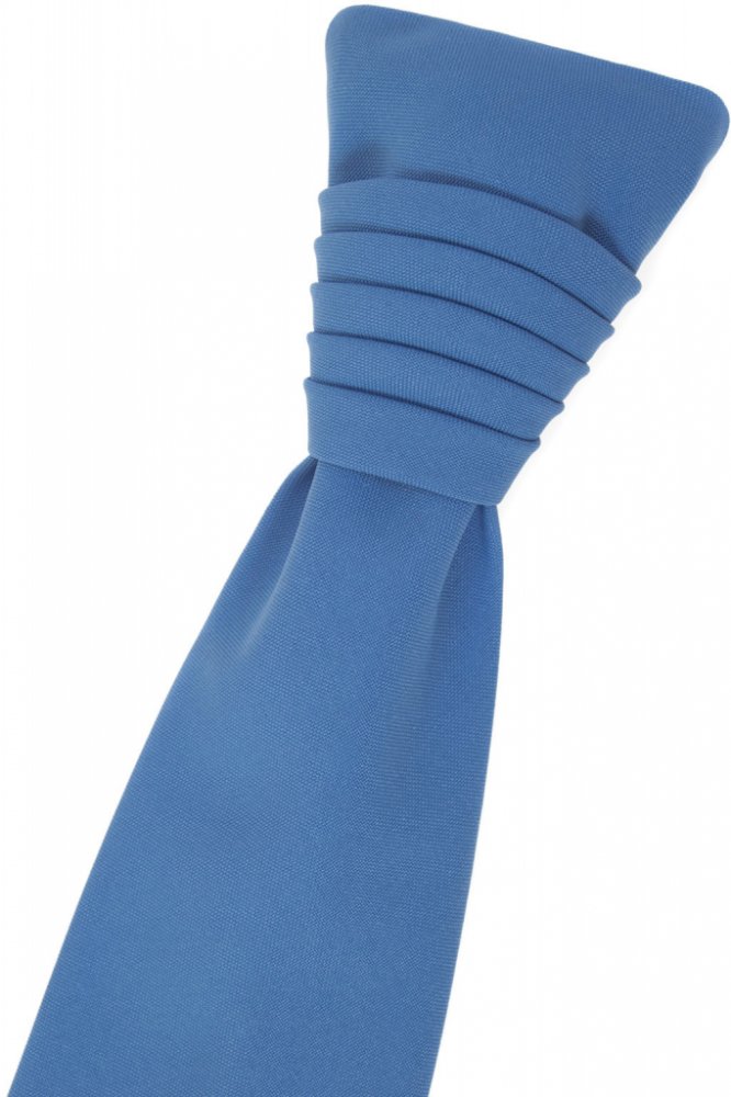 Modrá pánská regata je druh pánské kravaty, která má předvázaný ozdobný uzel.
