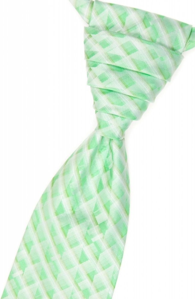 Zelená pánská regata s neobvyklými pruhy je druh pánské kravaty, která má předvázaný ozdobný uzel.
