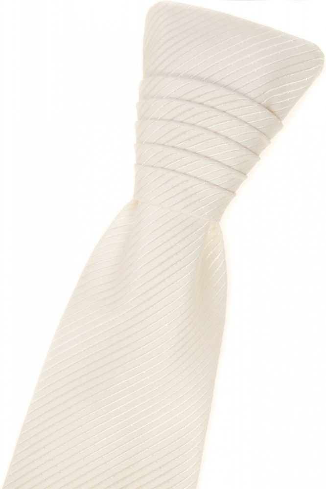 Smetanová pánská regata s proužky je druh pánské kravaty, která má předvázaný ozdobný uzel.
