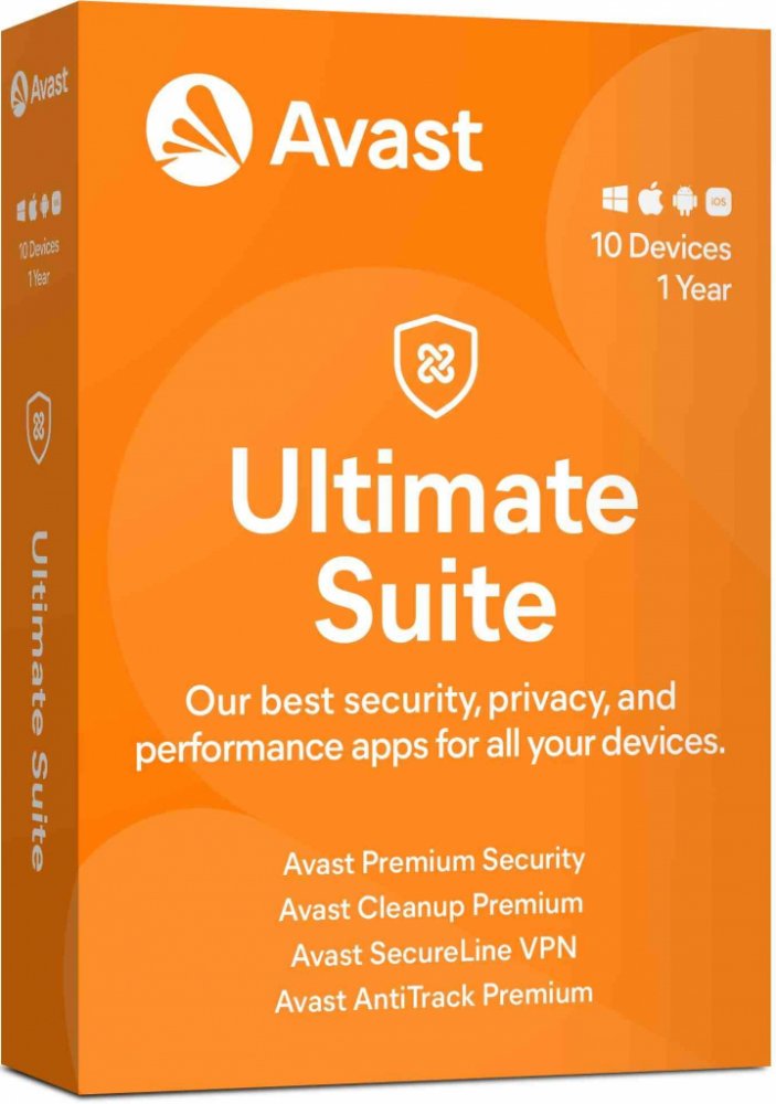 Avast Ultimate Multi-Device licence na 12 měsíců (až na 10 PC ) Avast UltimateAvast Ultimate není jen antivirus. Je to kompletní sada pro zabezpečení a ladění všech vašich počítačů, telefonů a tabletů a pro ochranu vašeho soukromí. Jedna sada na všechnoAvast Ultimate je praktická prémiová sada všech nástrojů, které potřebujete k péči o všechna svá zařízení. Obsahuje náš nejpokročilejší antivirus na blokování malwaru (včetně ransomwaru), VPN pro naprosté online soukromí a špičkové nástroje pro čištění a ladění. Avast Premium Security vám zajistí kompletní online ochranuNáš nejpokročilejší antivirus vám nijak nezatíží počítač. Navíc vám zajistí účinnou ochranu před viry, ransomwarem a spywarem a ochrání domácí Wi-Fi sítě i před doposud neznámými hrozbami. Avast Premium Security ochrání všechny vaše telefony, počítače a tablety. Avast SecureLine VPN vám zařídí skutečné online soukromíNaše VPN pomocí šifrování na bankovní úrovni kompletně ochrání vaše online soukromí, takže můžete prohlížet internet a platit, komunikovat či nakupovat bez obav, že by hackeři nebo někdo jiný mohli sledovat vaše aktivity či krást vaše data. Avast Cleanup Premium je komplexní nástroj na čištění a laděníZ vašeho počítače či telefonu snadno vyčistí nepotřebná data – bude pak fungovat rychleji a efektivněji. Získáte rychlý přehled o stavu zařízení, údržbu jedním kliknutím, nástroj na odstraňování bloatwaru a mnohem více. Zastavte vlezlé online sledováníRůzní slídilové mohou sledovat vaše online aktivity a sestavovat si o vás podrobný profil. Náš software na ochranu před sledováním vás upozorní, když se vás někdo pokusí sledovat, a daného slídila zastaví..