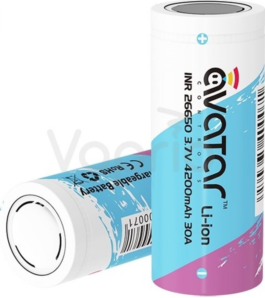 Baterie typu 26650 od výrobce Avatar.Kvalitní 26650 článek s výbornou kapacitou 4200mAh se může pochlubit maximálním vybíjecím proudem 30A, díky čemuž je ideální pro celou řadu výkonných MODů. Tyhle baterie tak využijete především v případě mnohých nízkoodporových spirálek. Vždy je však nutné dopředu vědět, jaký vybíjecí proud budete potřebovat a tomu přizpůsobit používané baterie.Upozornění: Nikdy úplně nevybíjejte baterii (pod 2,5V), nebo ji nepřebíjejte (přes 4,29V). Vždy používejte kvalitní a originální nabíječky. Parametry:Rozměr: 26650Nominální kapacita: 4200mAhNominální napětí: 3,7VMaximální nepřetržitý vybíjecí proud: 30A