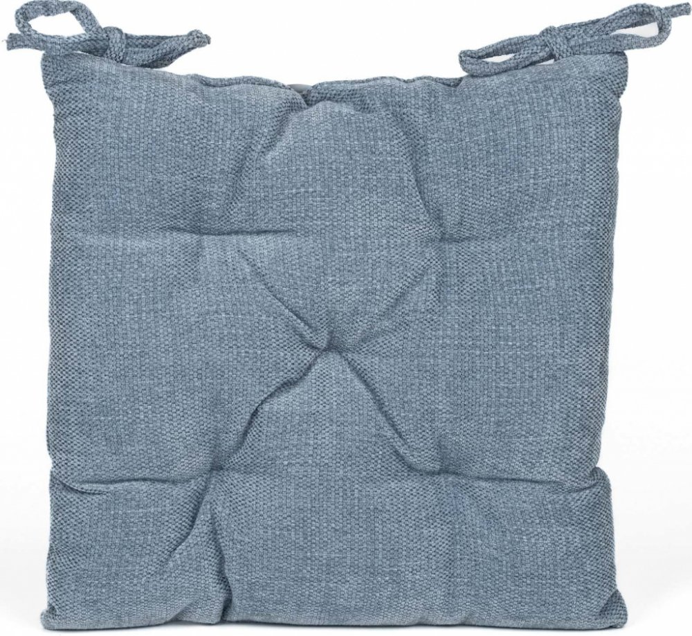Prošívaný čtvercový sedák z žinýlky v modré barvě v rozměru 40x40cm. Sedák je vyroben z kvalitního materiálu s vysokou odolností proti prosezení a je opatřen provázky pro pevné přichycení k židli. Je vhodný jako dekorační prvek do kuchyně nebo na zahradu pro příjemné sezení. Povlak podsedáku je vyrobený ze 100 % polyesteru, výplň je tvořena ze 100% polyuretanu (rouno z dutého vlákna).